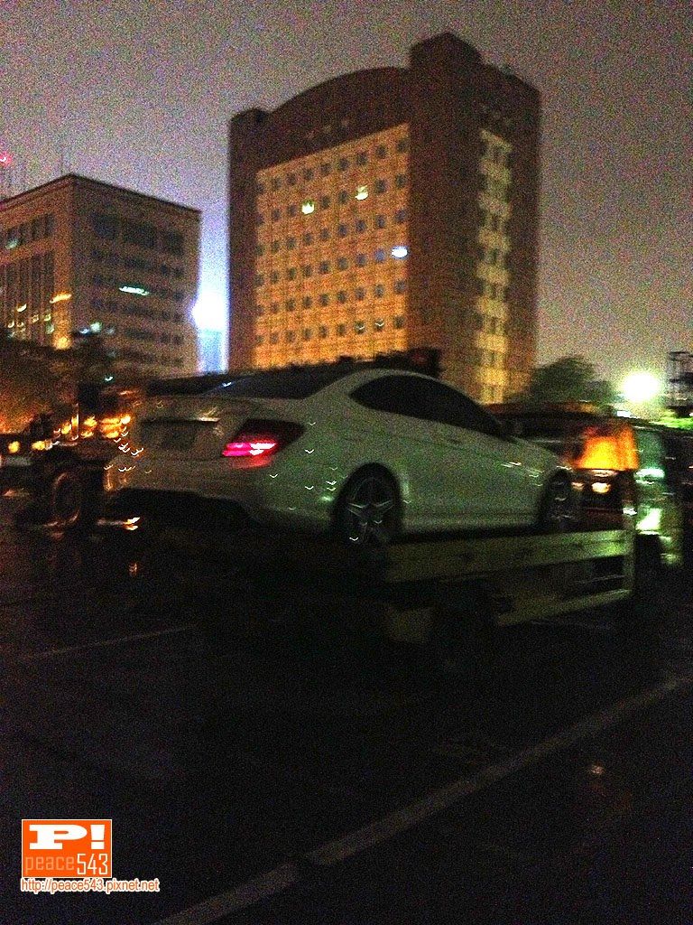 這台則是C63 coupe,結果居然在拖車上忘了關駐車燈 ...