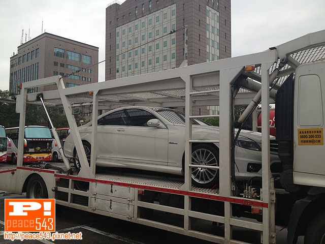 常在這台拖車上,看到等待掛牌的新車,如BMW E90 M3、Porsche 997等等。。。 結果最近又看到AMG CL63、AMG C63 coupe...