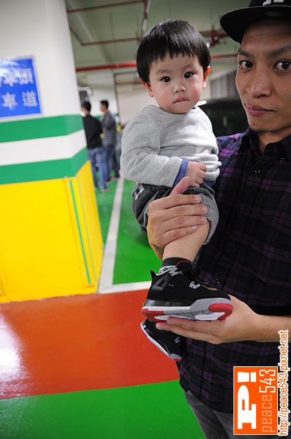 車友的小孩(抱著的這位不是爸爸,疑似誘童犯?),穿著漂亮的Jordan 四代來參加咧... (痞子叔叔好想要唷~~