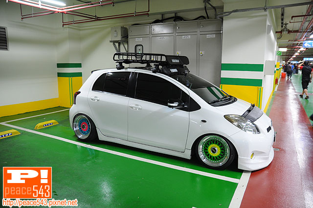 玩色玩得很棒的一台Toyota Yaris (Vitz),高度也很正點,配上BRA、車頂架,整個就是一個素淨美。