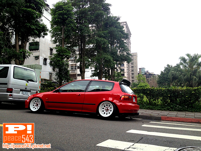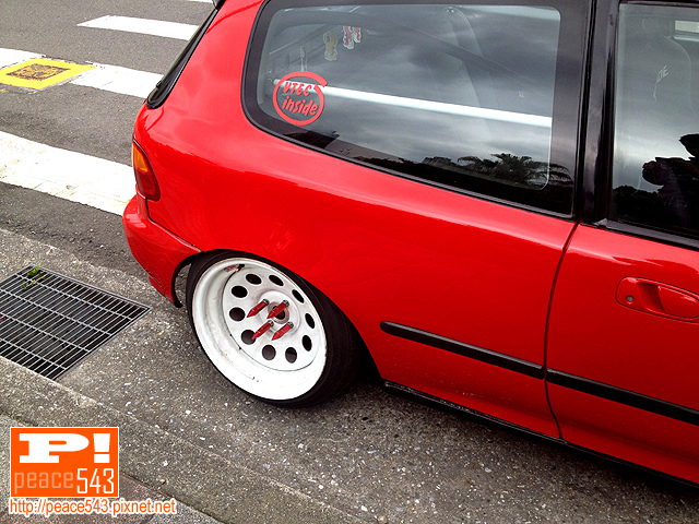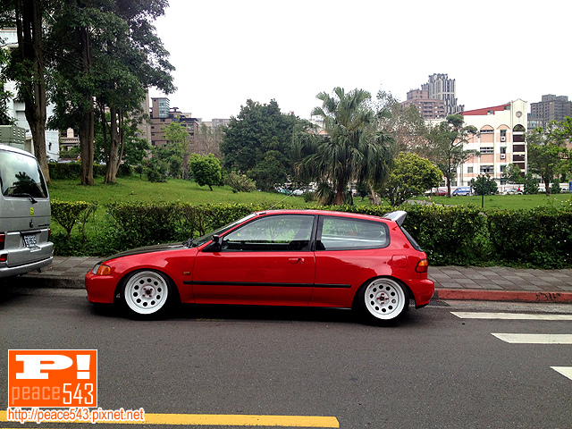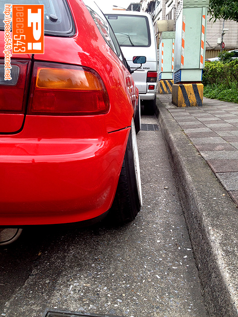 有天經過一條小路,結果居然發現這台好東西,原來就是之前常常跟大家溝通的,最佳JDM母體的Honda Civic EG(五代三門喜美)啦。這台紅色的Civic Si呢,配白圈,輪胎做角度 (Wheel Camber),Tyre Stretch繃胎 的很要緊,真的相當吸睛啊(車牌應該有故意選牌過,一定是忠實痞粉~~~(蓋章